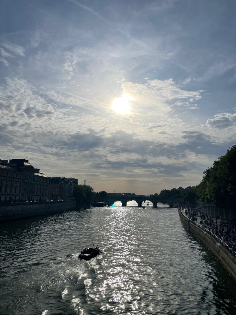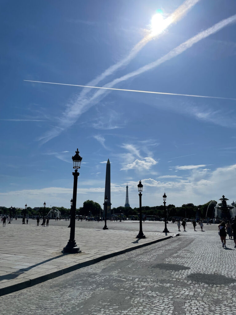 Na een korte opfrissessie hebben we de metro weer gepakt om Parijs te verkennen. Onze eerste stop was Place de Concorde, waar we direct keihard geconfronteerd werden met enorme hitte in de stad (33 graden!). We wilden via het park richting het Louvre lopen, maar vanwege een festival was dit gesloten. Helaas was ook de glazen piramide bij het Louvre afgesloten en zijn we maar op zoek gegaan naar een koffietentje. Met een cappuccino achter de kiezen konden we weer even verder, maar die hitte was ons wel langzaam aan het slopen. We stapten af en toe een winkel in om te genieten van de airco en verplaatsten onze langzaam richting het eilandje Île de la Cité, waar o.a. de Notre-Dame zich bevindt.