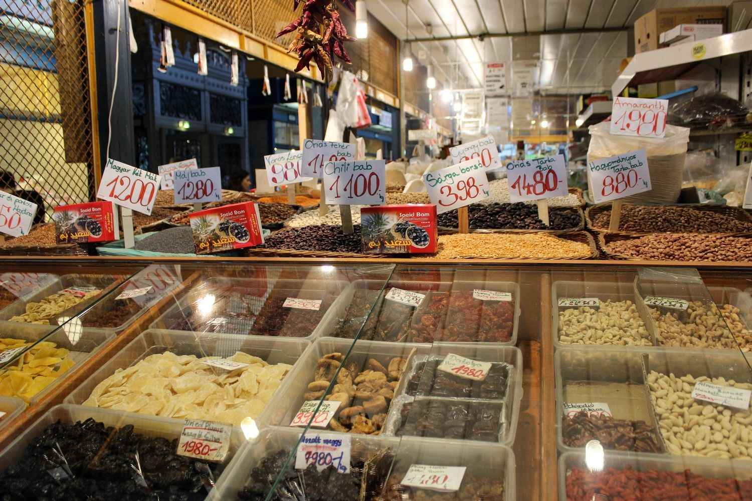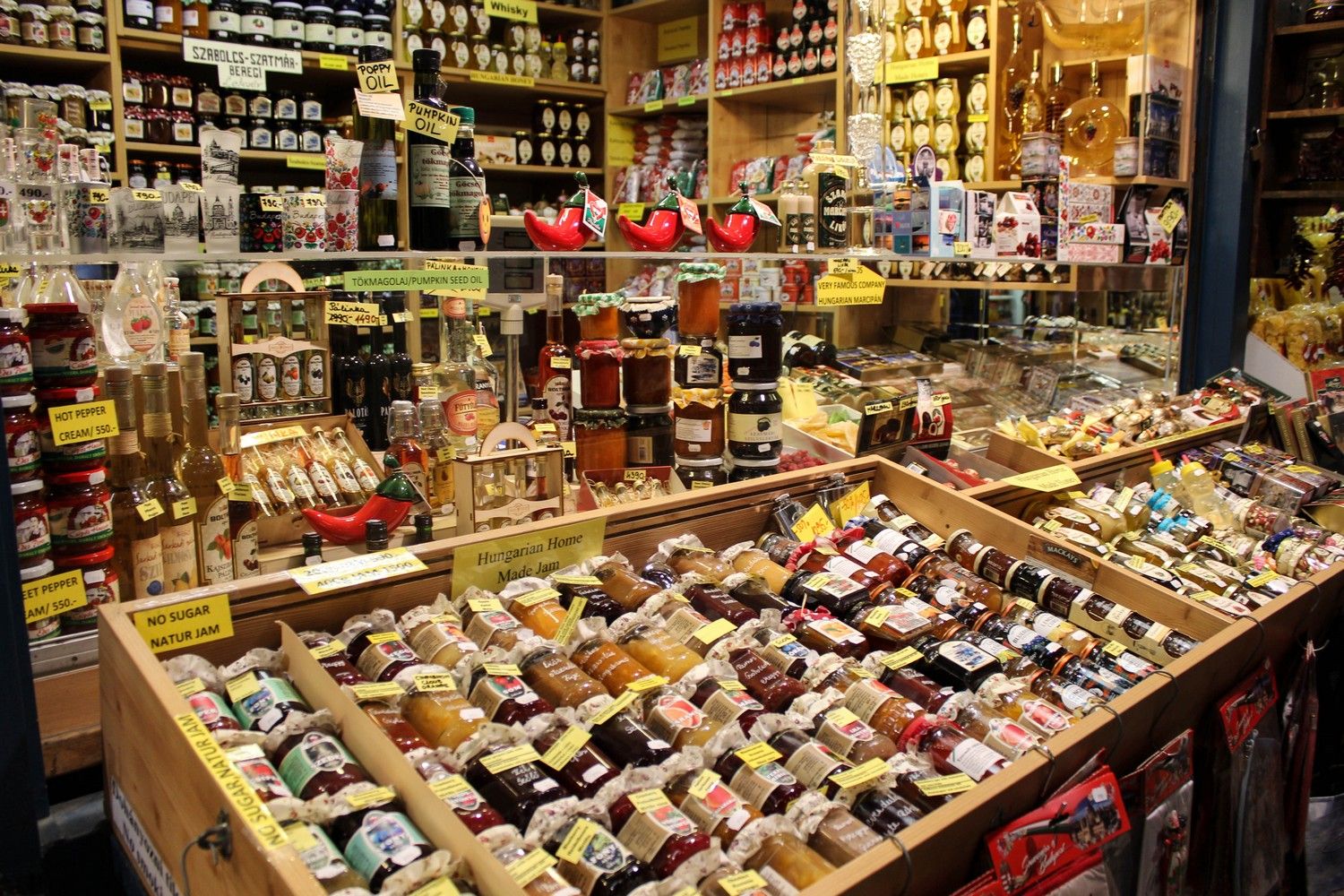 Op de begaande grond vind je met name etenswaren, zoals vlees, groente, fruit, gebak, noten en specerijen. Met name de Hongaarse producten zijn het bekijken (en kopen) waard: salami, paprika, jam, ganzenlever en wijnen. Zelf vind ik vooral de potjes paprikapoeder heel leuk! Hongaren zijn ook echt fantastisch in jam maken, met een enorme keuze. In sommige jam stoppen ze zelfs wijn of chocola. Tijdens mijn laatste bezoek heb ik een heerlijke jam van rozenbottel meegenomen en diverse nootjes.